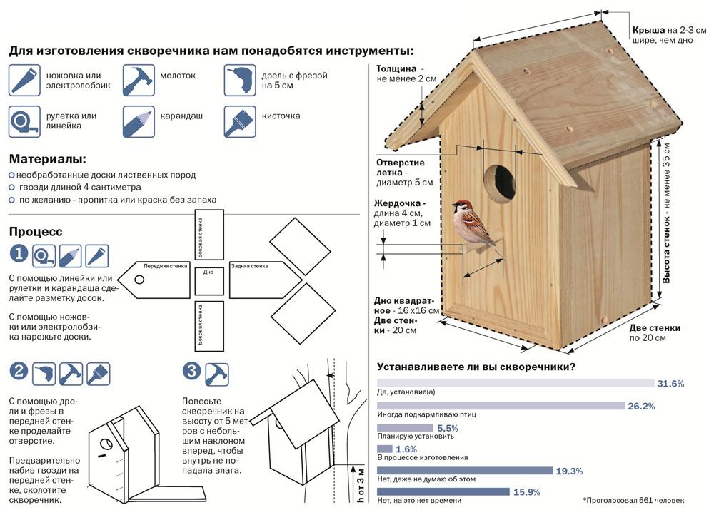 Как сделать скворечник: пошаговая инструкция для мастеров