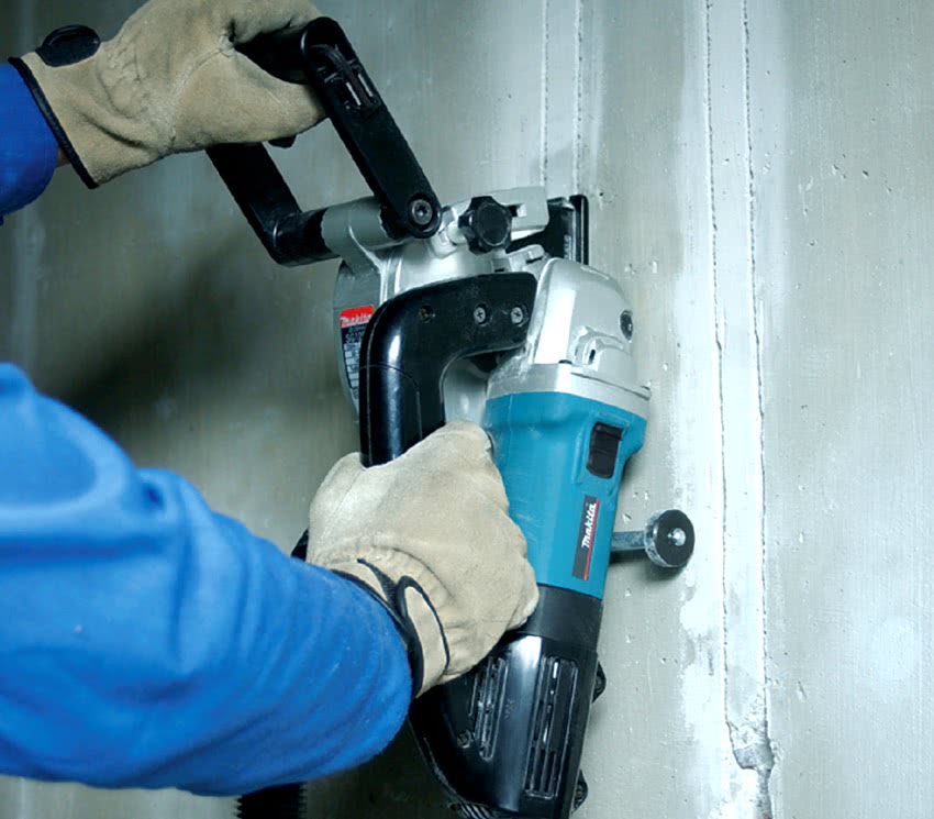 Для штробления бетонной стены понадобится болгарка или перфоратор. Предварительно стоит нанести линию прохождения проводов. Она должна пролегать строго в горизонтальном и вертикальном направлении, заворачивая под прямым углом. Диагональная прокладка не допускается. По намеченному маршруту с помощью болгарки выполняются две параллельные полосы, расстояние между которыми и глубина должны соответствовать диаметру кабельной скрутки.