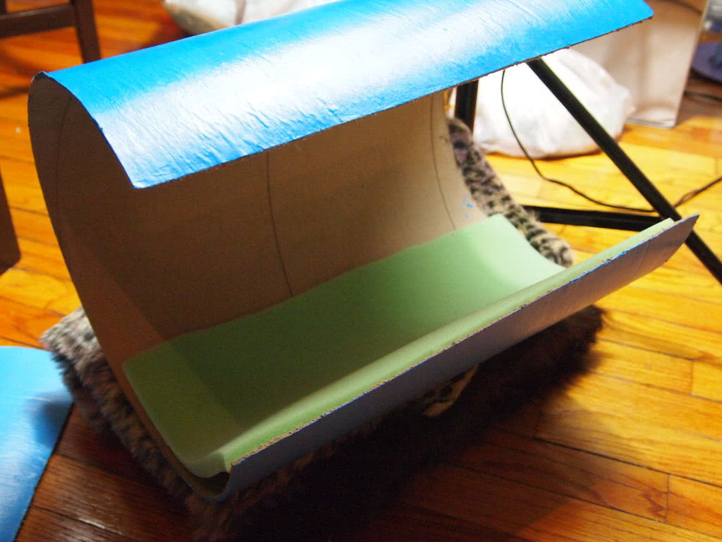 Чтобы изготовить подобное жилье, потребуется не только поролон для наполнения, но и обивка. Её можно сшить из любого мягкого материала, как обивка мебели или ковролин.