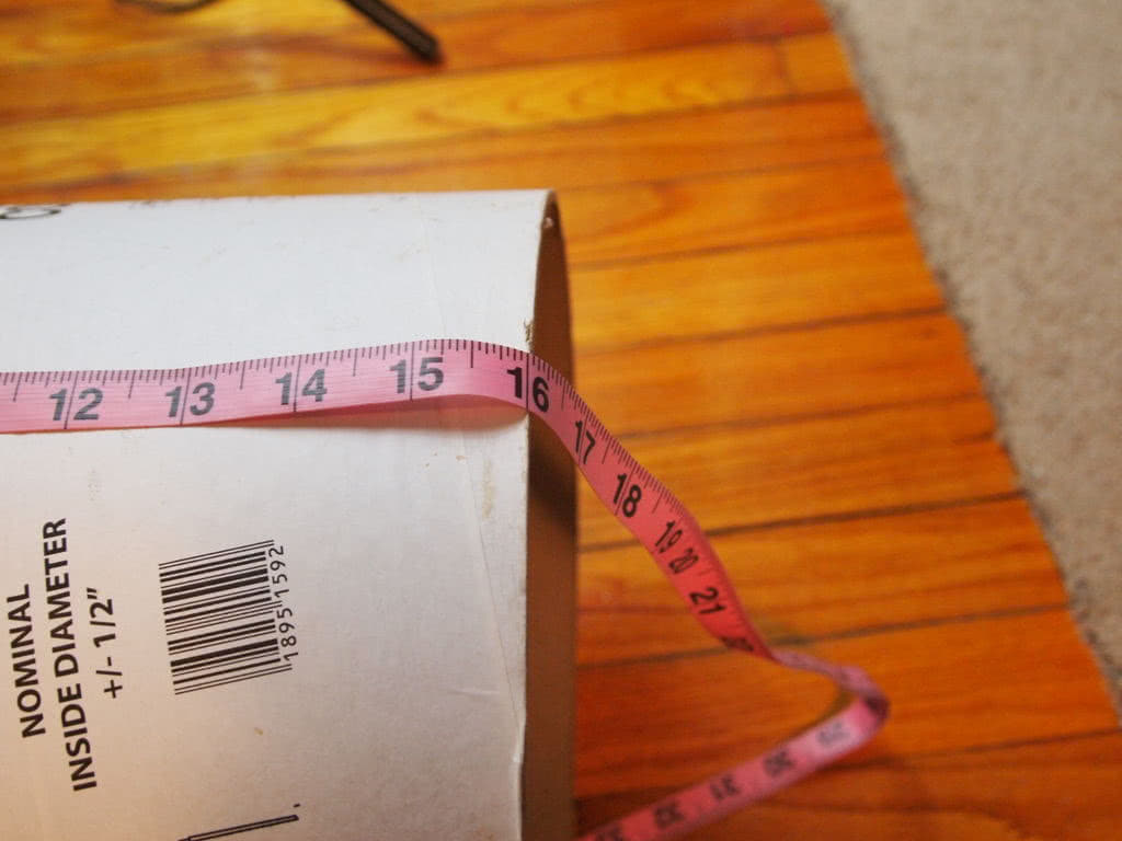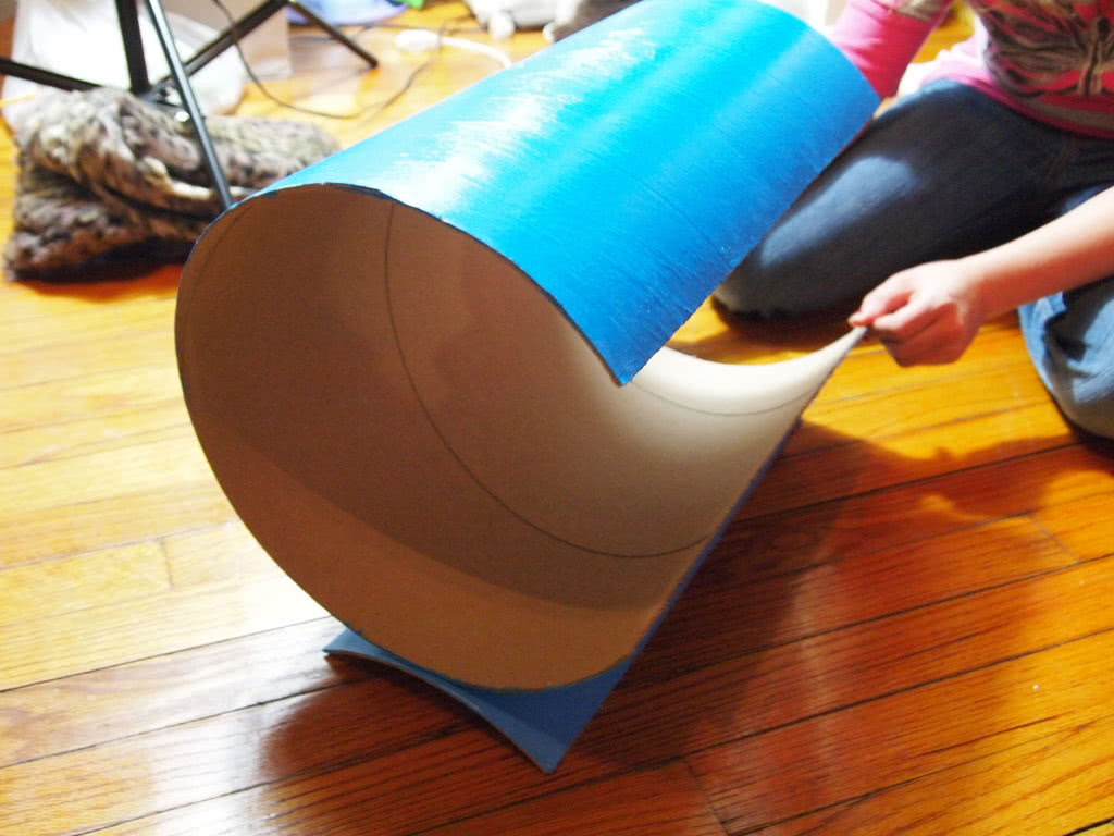 Теперь на торцевой части нарисуйте отверстие, которое должно быть достаточно большим, чтобы кошка могла без проблем войти в домик. Если у вас котенок, обведите на картонке обычно блюдце.