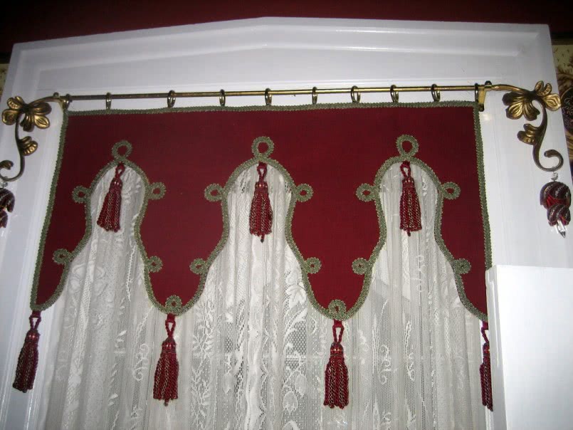 Для украшения ламбрекенов можно использовать бахрому, кружева или красивую оборку. А также не стоит забывать про фестоны. Применив немного фантазии, вы получите уникальный ламбрекен, который полностью преобразит ваше окно.