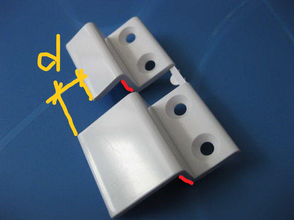 Важный момент: чтобы «кармашки» располагались в нужных местах, их устанавливают на расстоянии большем, чем высота рамки сетки. Карман с большей высотой удерживающей части ставится вверху (на фото нижняя деталь), расстояние между опорными плоскостями (на фото выделены красным) должно превышать высоту рамки на d+1…2 мм.