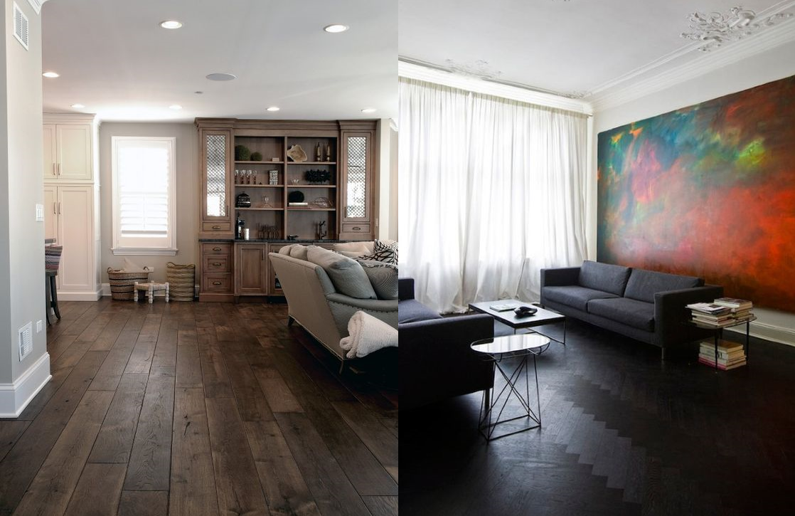 Оценить высоту потолка и решить – можете ли вы позволить себе тёмные цвета на полу. Если потолки низкие, а комнаты маленькие, то общая площадь комнаты будет зажата тёмным полом. В таком случае следует подбирать напольное покрытие светлого оттенка – белое, светло-серое, золотистое, солнечное. Проанализировать общую палитру комнаты и подобрать цвет полов и стен в единой гармонии