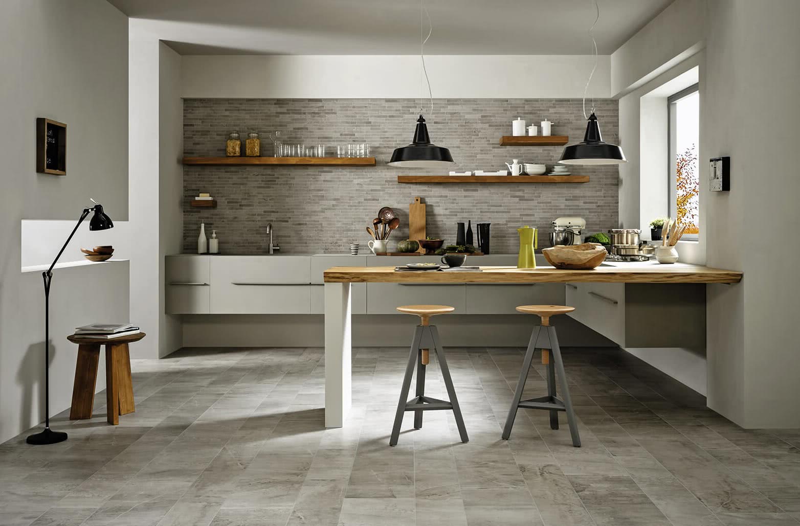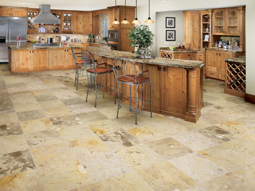 Выбор, какую плитку положить на кухне на пол, имеет свои особенности по причине специфики этого помещения. Им пользуются каждый день все члены семьи, здесь готовится еда и в столовой зоне принимается пища.