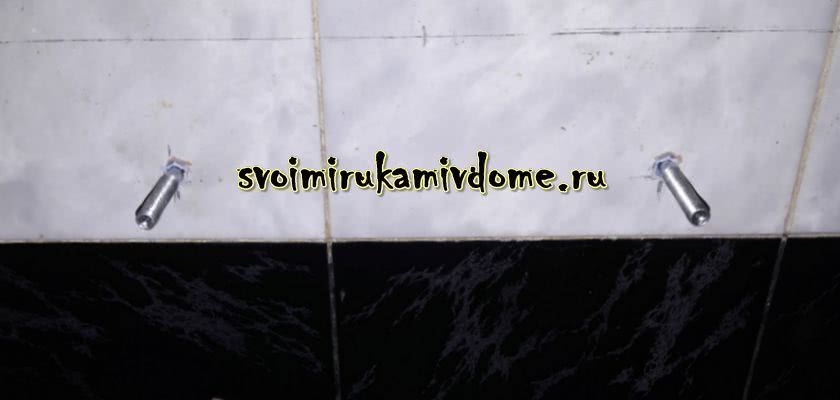 Пластиковые дюбеля из комплекта вставил в отверстия, вкрутил в них металлические крепежи с помощью двух гаек и гаечного ключа (гайки потом открутил).