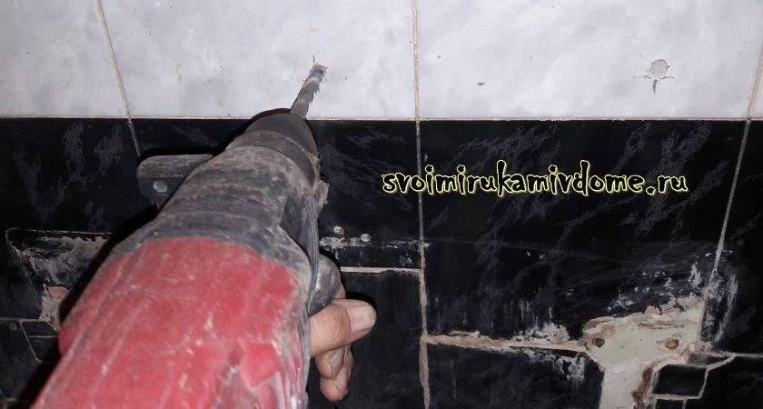 Муж наметил карандашом и просверлил отверстия для крепежа, входящего в комплект вместе с раковиной.
