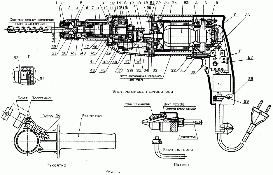 Само по себе устройство перфоратора требует отдельного подробного освещения (оптимально увидеть на видео).