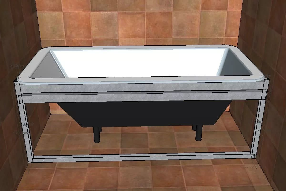 При сборке каркаса нужно использовать только нержавеющие саморезы. Конструкция должна получиться прочной, но лучше рассчитать установку ванны таким образом, чтобы при погружении в подиум она уперлась ножками в пол или в специально сделанные для такого случая подставки.
