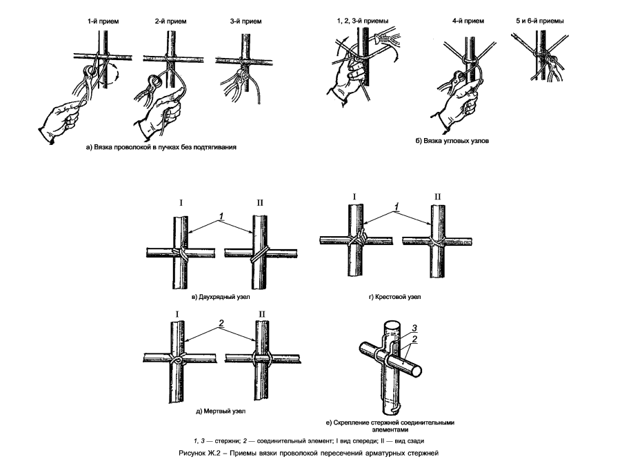 Вязкой Для армирования таким типом нам понадобится предварительно нарезанная по 25-35 мм. и сложенная в два слоя стальная проволока диаметром 1 мм. Далее каждое стык соединяем так как показано на рисунке.