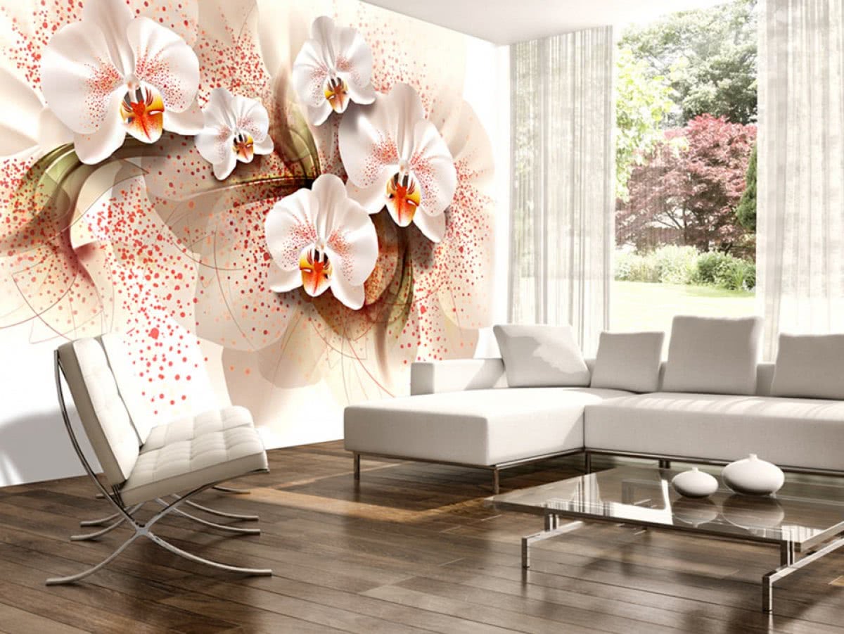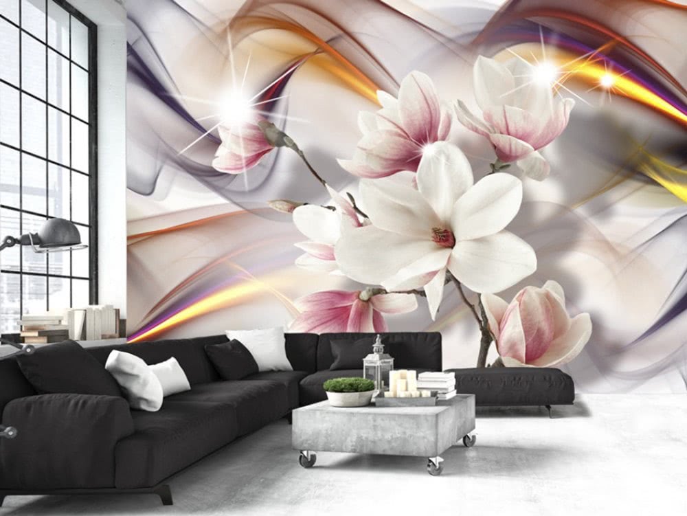 Модные цветочные мотивы — растения в винтажном стиле, будто срисованные из старинных книг. Популярны и растительные композиции из ярких и крупных цветов, выполненных в акварели. Для комнат с большими окнами подойдут виды луга, поля или леса (виды джунглей для малых комнат не рекомендуются).