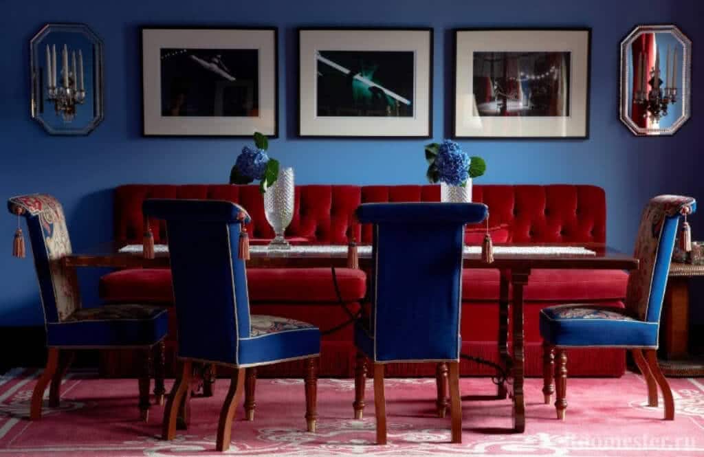 Оттенки синего активно используются при оформлении любой комнаты. Индиго прекрасно сочетается с: