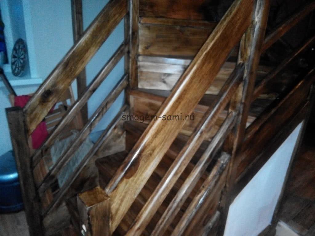 Если не нравится природный цвет сосны, лиственницы или другого дерева, используйте морилку, чтоб сделать лестницу темнее. Можно применить лак на масляной основе. подобрав нужный оттенок. Что лучше – решать вам.