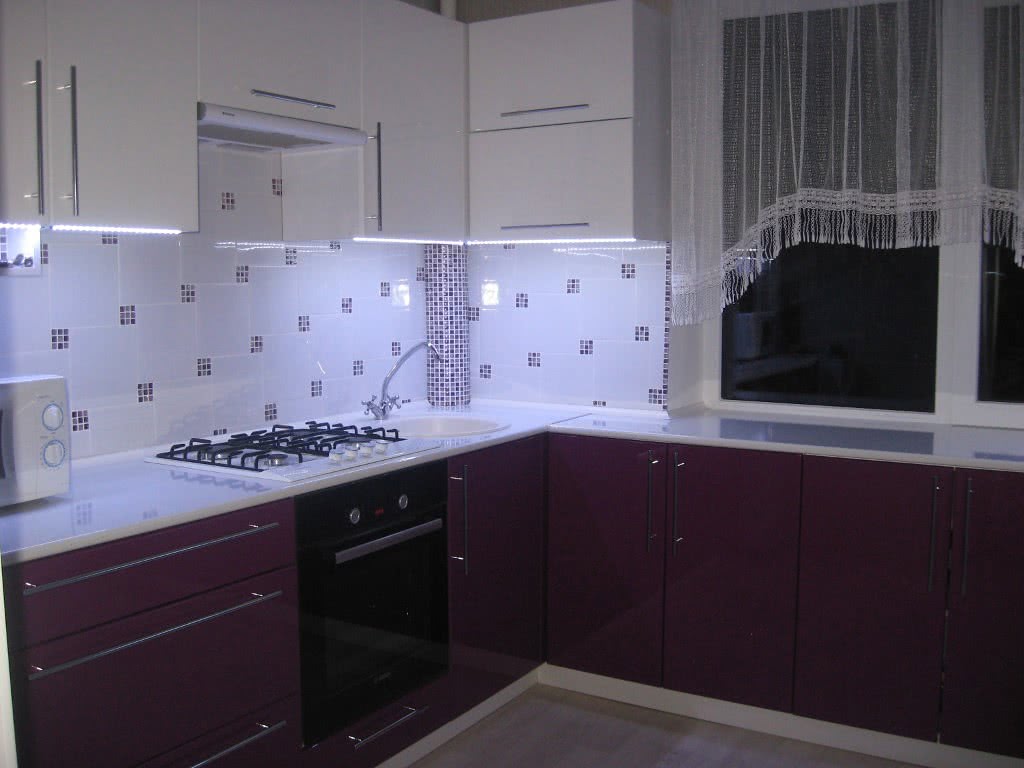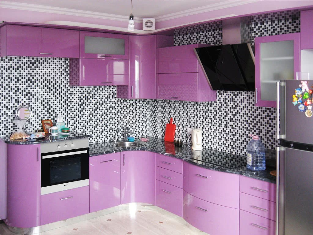 Сочетание в гарнитуре фиолетового цвета с синим подчеркнет индивидуальность Вашего интерьера.