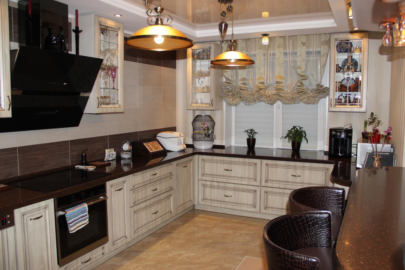 Традиционная большая кухня — это баланс и симметрия. При ее оформлении могут использоваться самые разнообразные стили и цветовые решения.