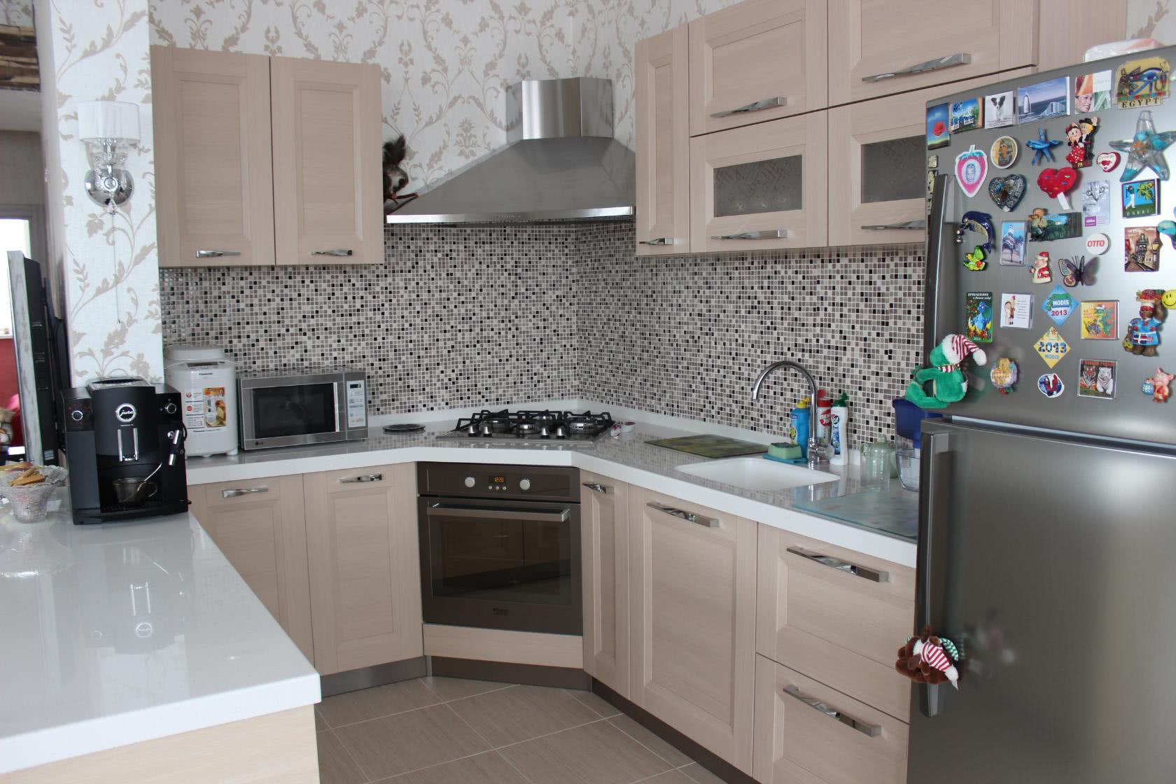 Чтобы интерьер не выглядел скучным, дизайнеры часто применяют точечное акцентирование. Наиболее популярные цвета для оживления бежевого гарнитура – бордовый, шоколадный и красный. Бежевые фасады идеально подойдут для интерьера, уже имеющего один или несколько ярких тонов. Они помогут внести цветовую гармонию в такое пространство.