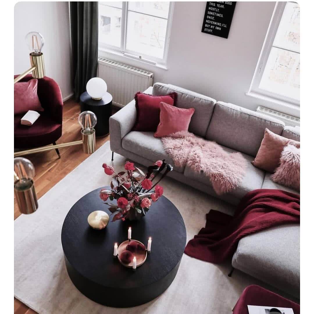 Серый + красный. Не берите приглушенные оттенки красного: алый, малиновый, фуксия смотрятся ярко и свежо. Даже монохромный дизайн заиграет по-новому.