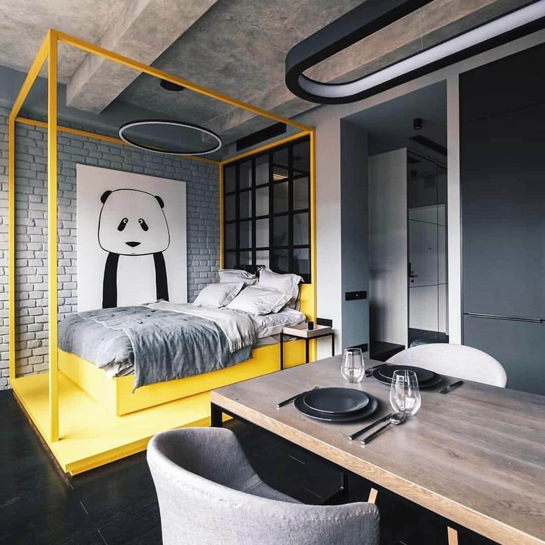 Серый + черно-белый. Это незаменимое контрастное трио для минималистичных интерьеров. Если отдадите преимущество светлым тонам – сможете визуально расширить помещение. Можно сделать черным одну акцентную стену, а другие выдержать в светлых тонах. Стильно смотрятся грубые фактуры.