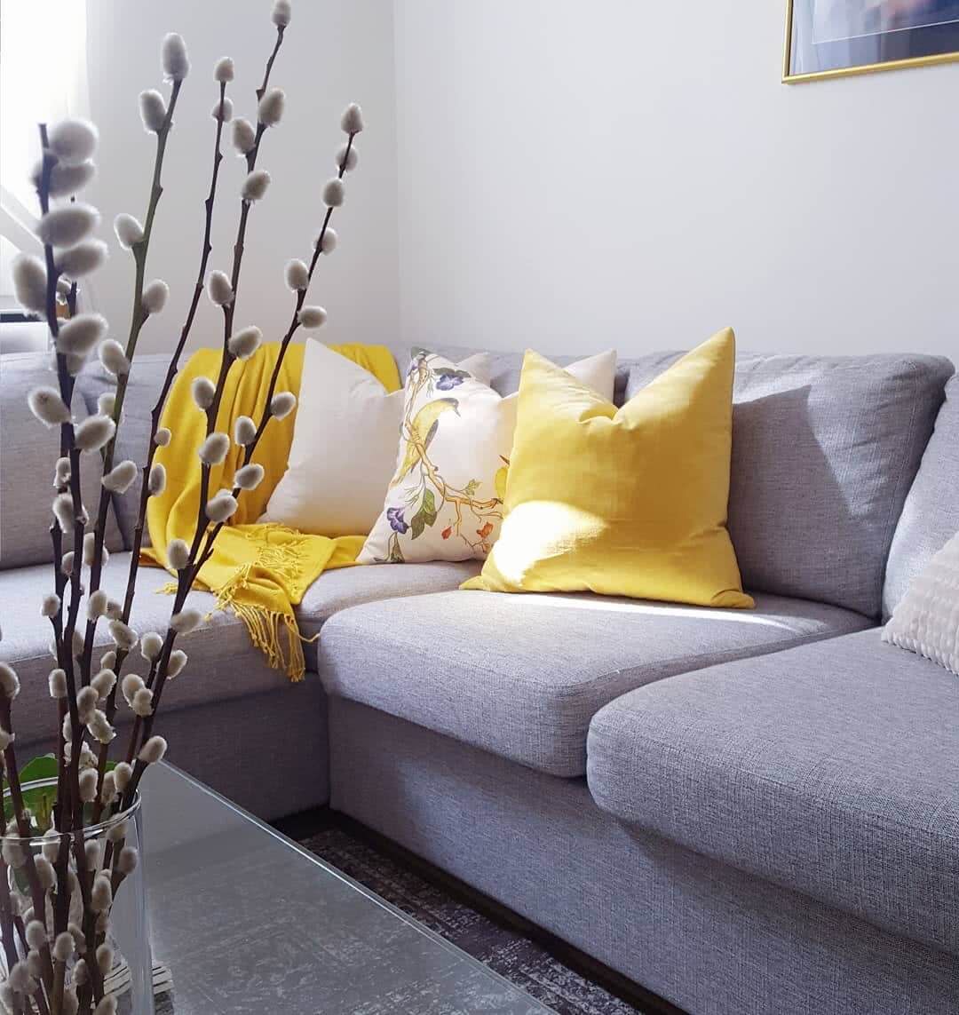 Желтый внесет каплю живого воздуха в унылость серого. Благодаря данному комбинированию можно создать неординарный образ помещения. Серо желтый можно разбавить нейтральными оттенками черного и белого. На серых стенах хорошо смотрятся желтые декоративные элементы — подушки, шторы, ковры, картины.