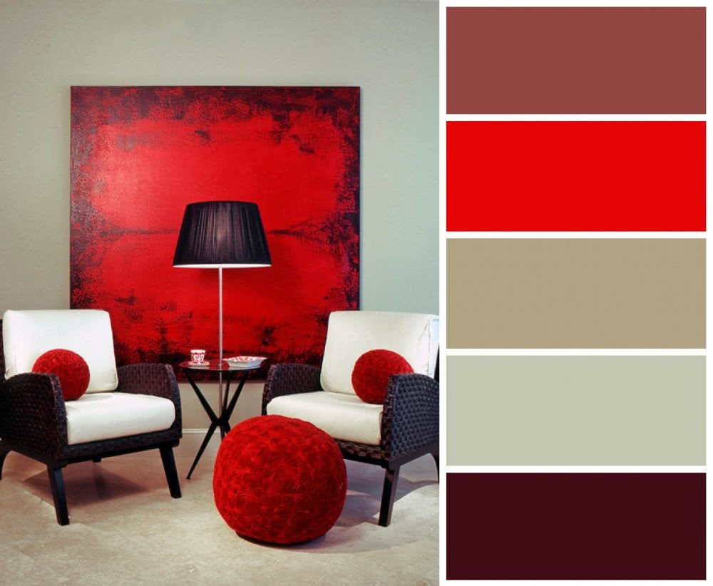 Сочетание цветов: темно-серый и красный сохраняет приоритет яркого пятна, но в то же время обретает классическую строгость. В такой комбинации красный может быть как ярким, там и сдержанными, вплоть до бордового. В его применении не стоит забывать о симультанном контрасте. Для примера рассмотрите пары с гранатовым, китайским красным, темно-красным, рубиновым, вишневым.