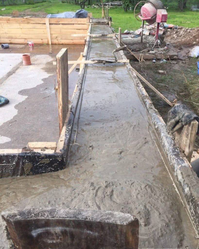 От процесса заливки до строительства бани должен пройти срок не менее чем 3 недели. Причем первые 5-7 дней получившееся бетонное основание необходимо проливать водой каждые 6 – 8 часов для придания прочности.