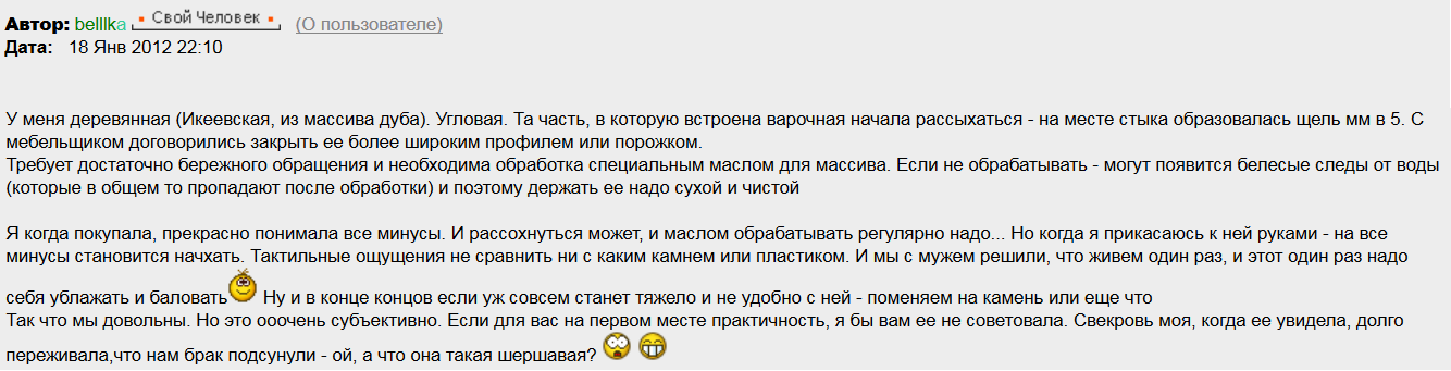 Так что, если вы готовы смирится с некоторыми недостатками, но всё же очень хотите столешницу из массива дерева — берите!