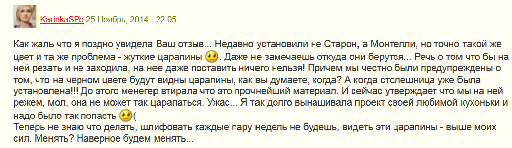 То есть, основное, на что жалуются владельцы таких столешен — это возникновение царапин.