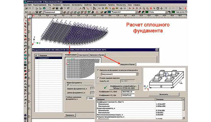 - тип сооружаемого основания. Профессиональная программа позволяет рассчитать ленточную основу, плитное основание и столбчатую конструкцию;