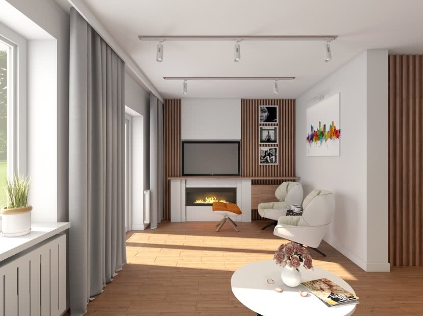 Все чаще в оформлении интерьера используется минимализм. Он предполагает использование ограниченного количества мебели для создания максимально свободного пространства в помещении. В данном случае чаще всего можно увидеть фальш-камин в квартире или же электрическую конструкцию в просторном помещении. Они лучше всего подчеркивают сдержанность интерьера и не противоречат ему.