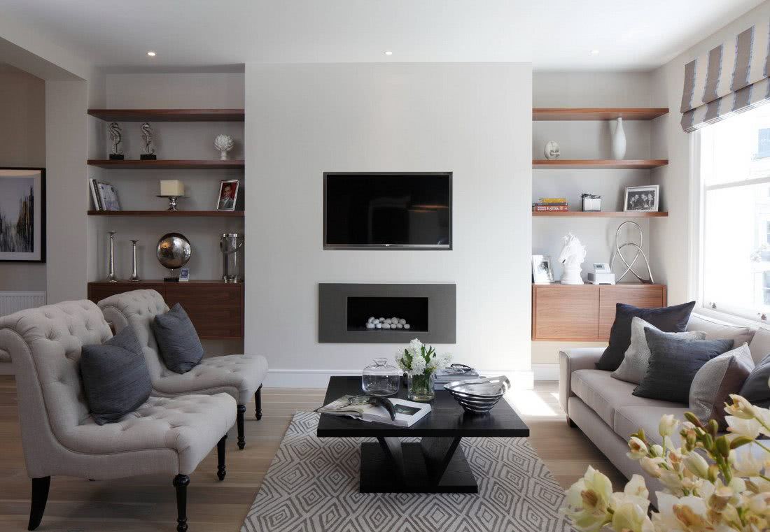 По мнению дизайнеров, в интерьере гостиной простой квартиры будет уместным и электрический камин. Лучше отдавать предпочтение самым компактным и встроенным моделям. Они идеально дополнят дизайн и в целом не займут много места. Кроме того, надо позаботиться и о правильной расстановке мебели. Ведь для камина надо освободить максимум свободного пространства.