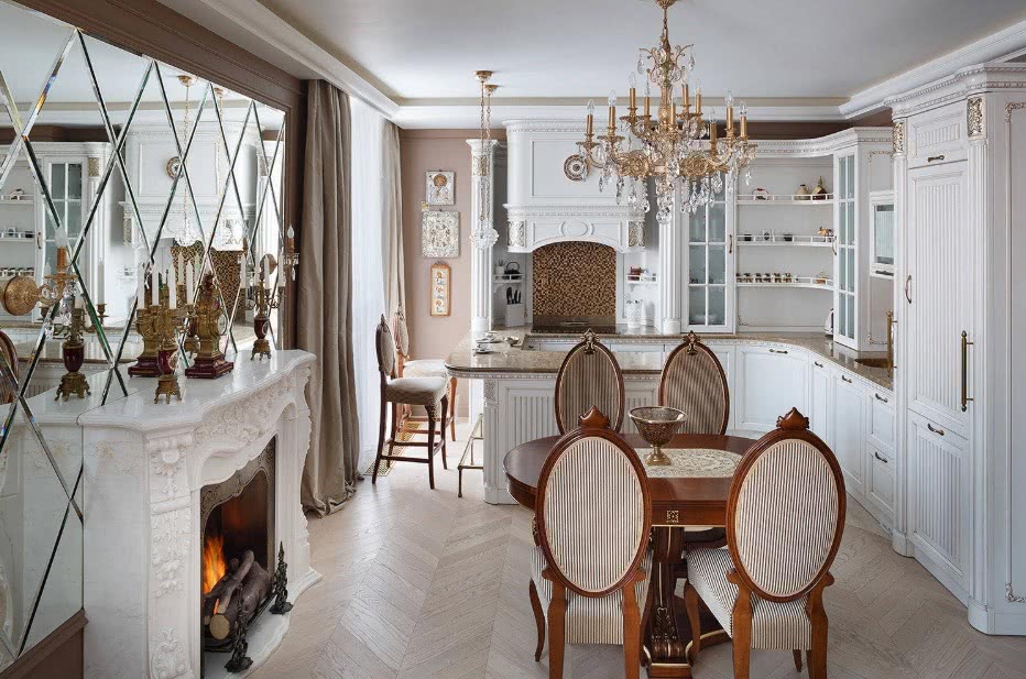 Несомненно, частный дом идеально подходит для установки любого вида камина. Особенно в том случае, если габариты комнаты большие. Для этого нередко объединяют гостиную с кухней в единое просторное помещение. Преимущественно в нем устанавливают классическую конструкцию еще на этапе строительства. Это позволяет учесть все нюансы и требования по части безопасности