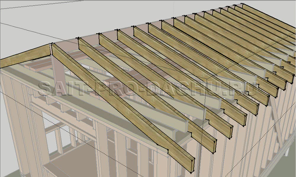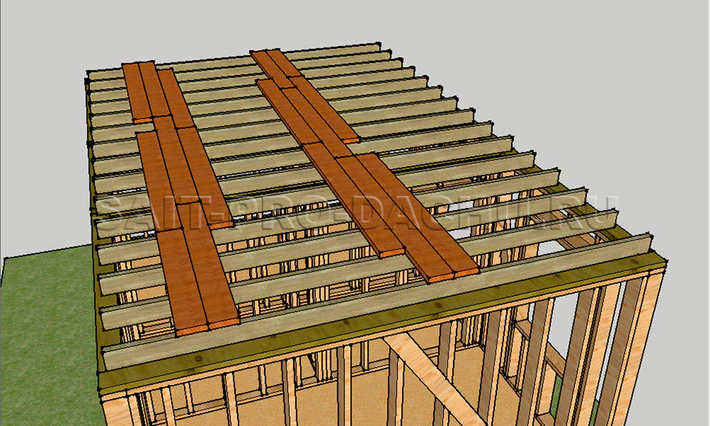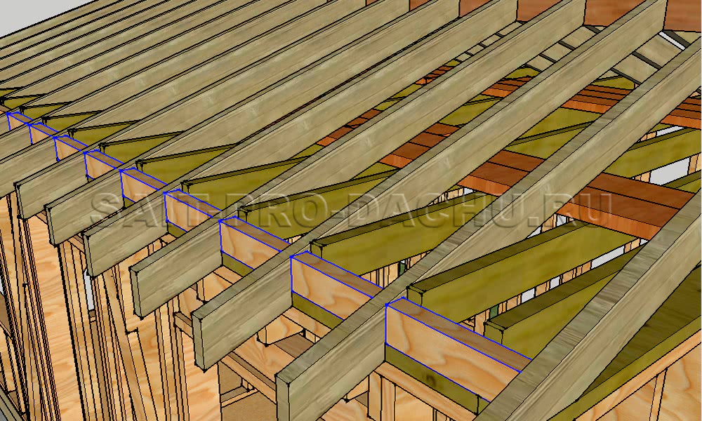 Чтобы ваши скаты были ровными и красивыми необходимо включить в конструкцию установленный на подпорках коньковой брус.
