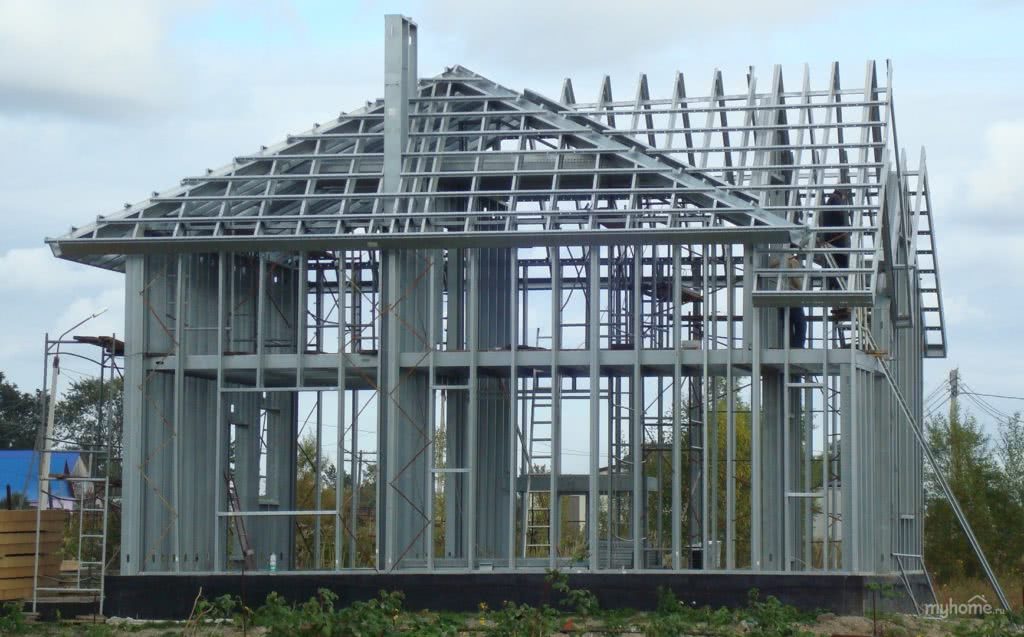 Изделия из металла применяют в роли несущей конструкции достаточно давно, к примеру при строительстве небоскребов или торговых центров. Однако такая методика не оправдывает себя при возведении частных домов – элементы из металла немало весят, занимают много пространства, для их закрепления между собой требуется клепание и сварка, в общем, самостоятельно такой дом не построить.
