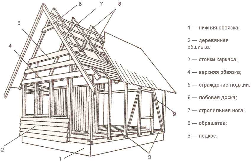 - традиционным — последовательно собирают каркас из стоек, ригелей, укосин, утепляют стены, монтируют обшивку;
