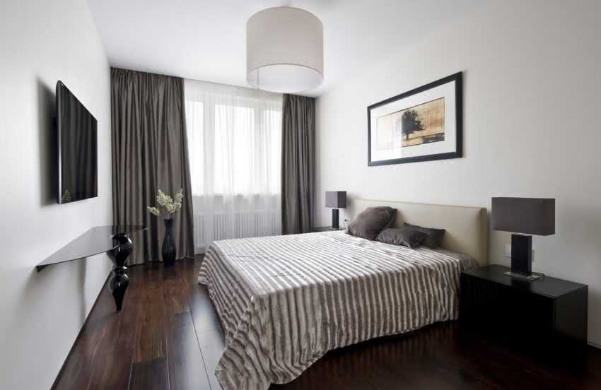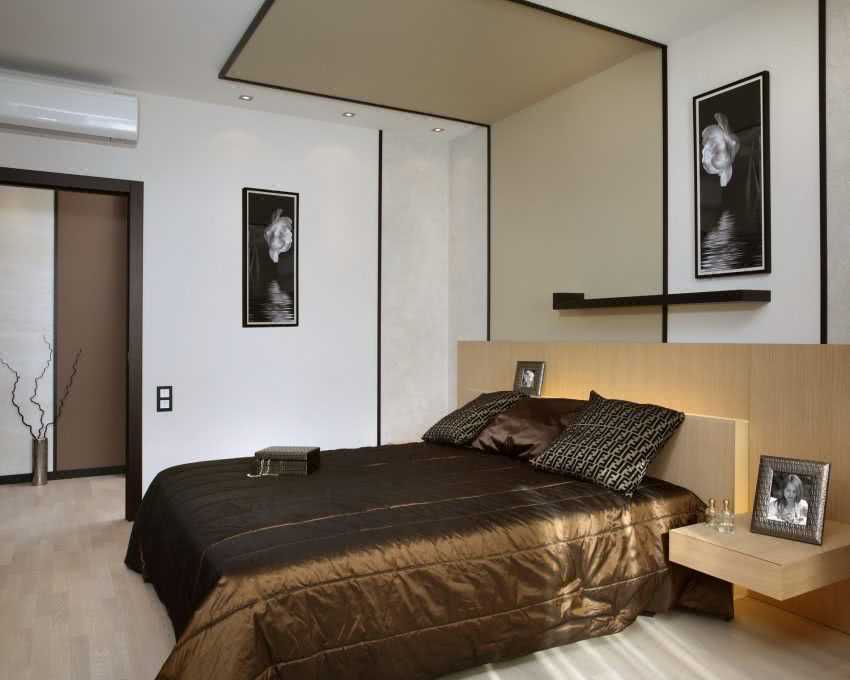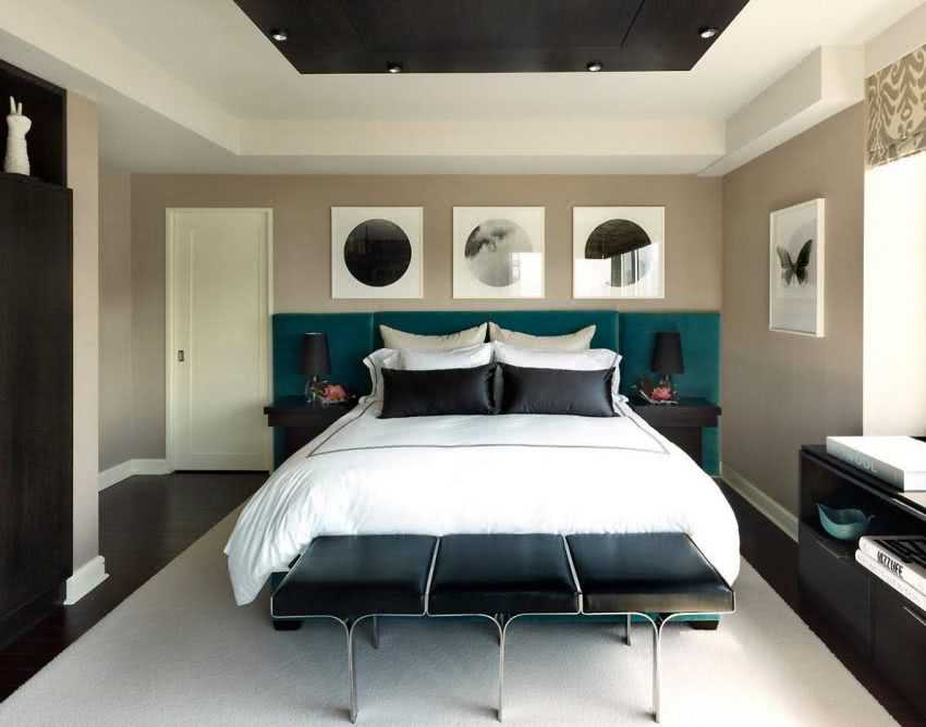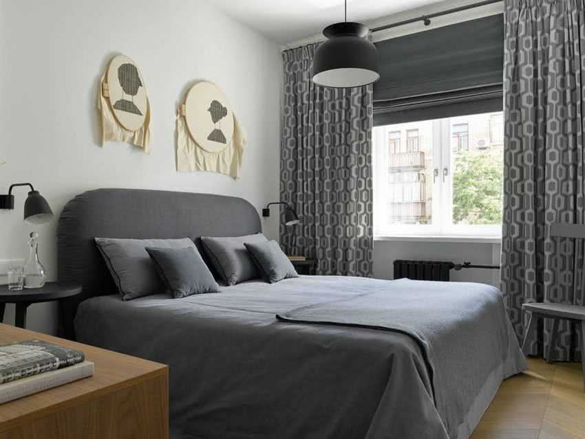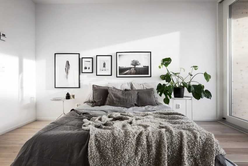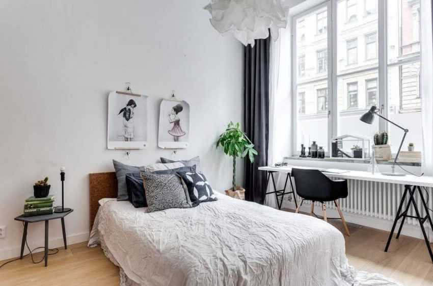 Черными графическими изображениями и карандашными рисунками можно украсить спальню в стиле минимализм (наиболее часто используемый дизайн интерьера для малогабаритных квартир)