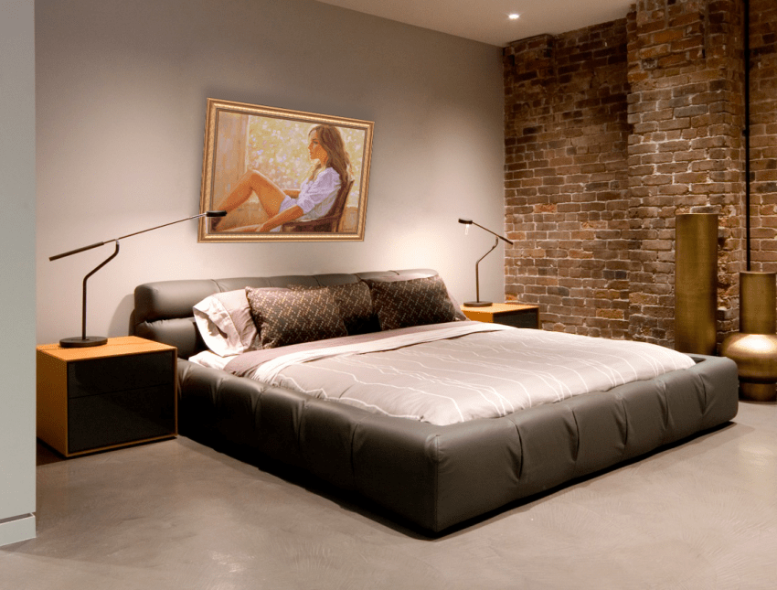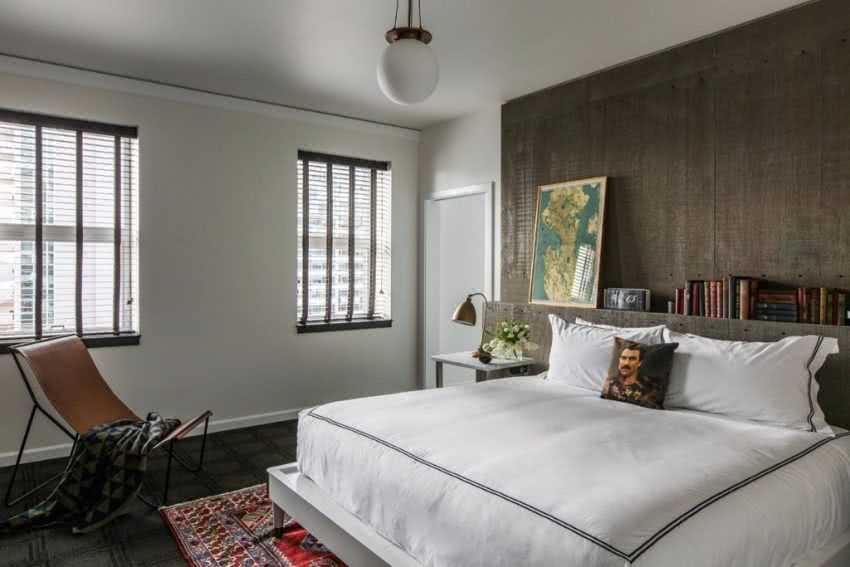 Изображения животных, рисунки цветов, городских пейзажей, в которых используется не более 2-х или 3-х цветов, органично вписываются в обстановку и придают помещению упорядоченный и строгий вид. В спальнях в стиле лофт для картин можно использовать металлические рамки. Их часто ставят на полочку, расположенную над головой. Картины с абстракциями, изображениями урбанистических пейзажей, по размеру равные ширине кровати, отлично дополнят декор из бетона и металла, характерный для этого оригинального стиля. Иногда графику наносят прямо на стены.