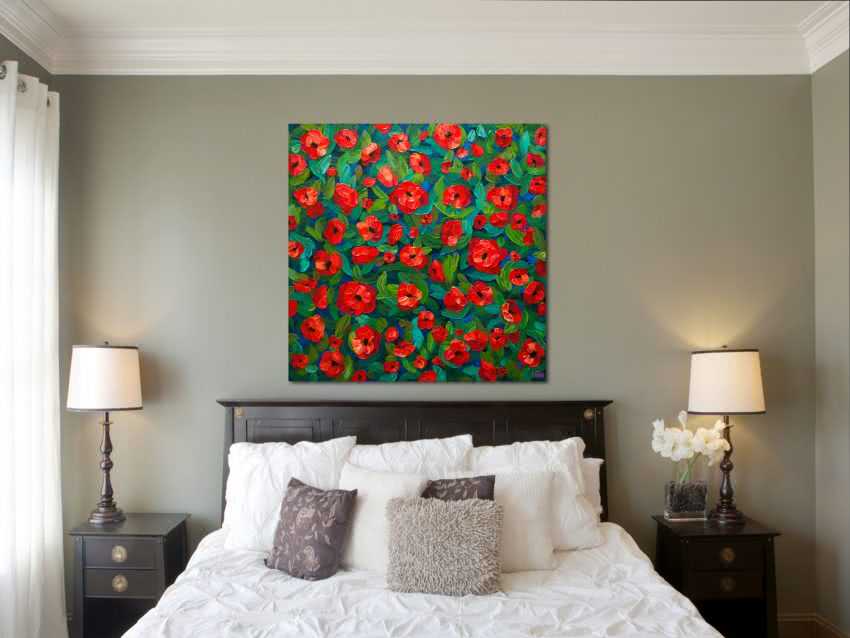 В первую очередь определяем будущее месторасположение картины в спальне.