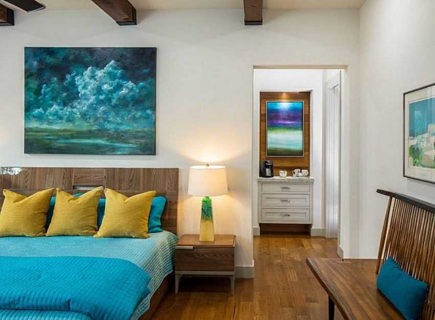 Они играют главную роль в спальне, они концентрируют внимание своей исключительностью и яркими элементами. Картины-акцент включают один из самых ярких цветов имеющихся в комнате, что позволяет гармонично вписаться в интерьер, даже если картина имеет абстрактный характер исполнения или совершенно другую тематику.