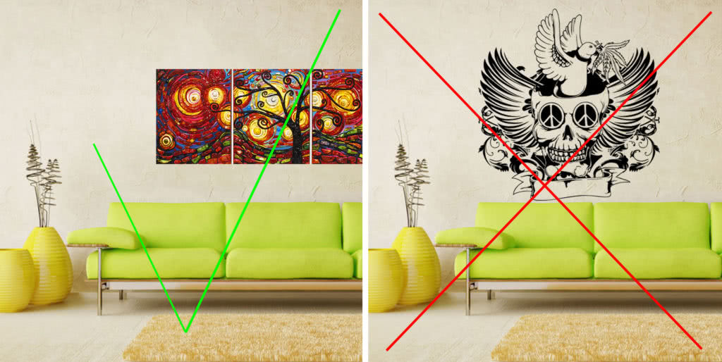 Вековая мудрость также содержит толкование изображений, которые допускается вешать в зону для отдыха: