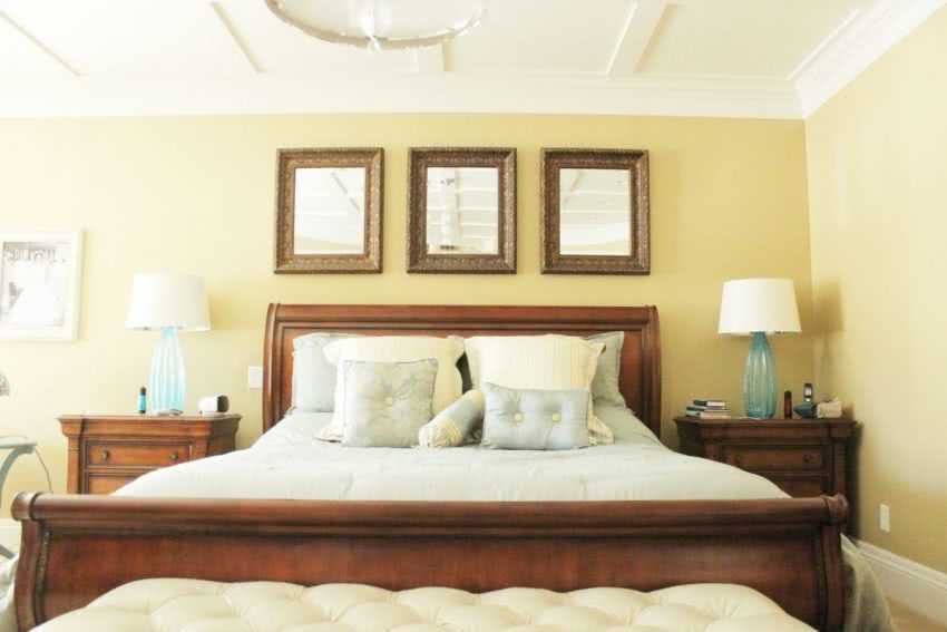 Состаренные картины в деревянных рамках для спальниИсточник housesdesign.ru