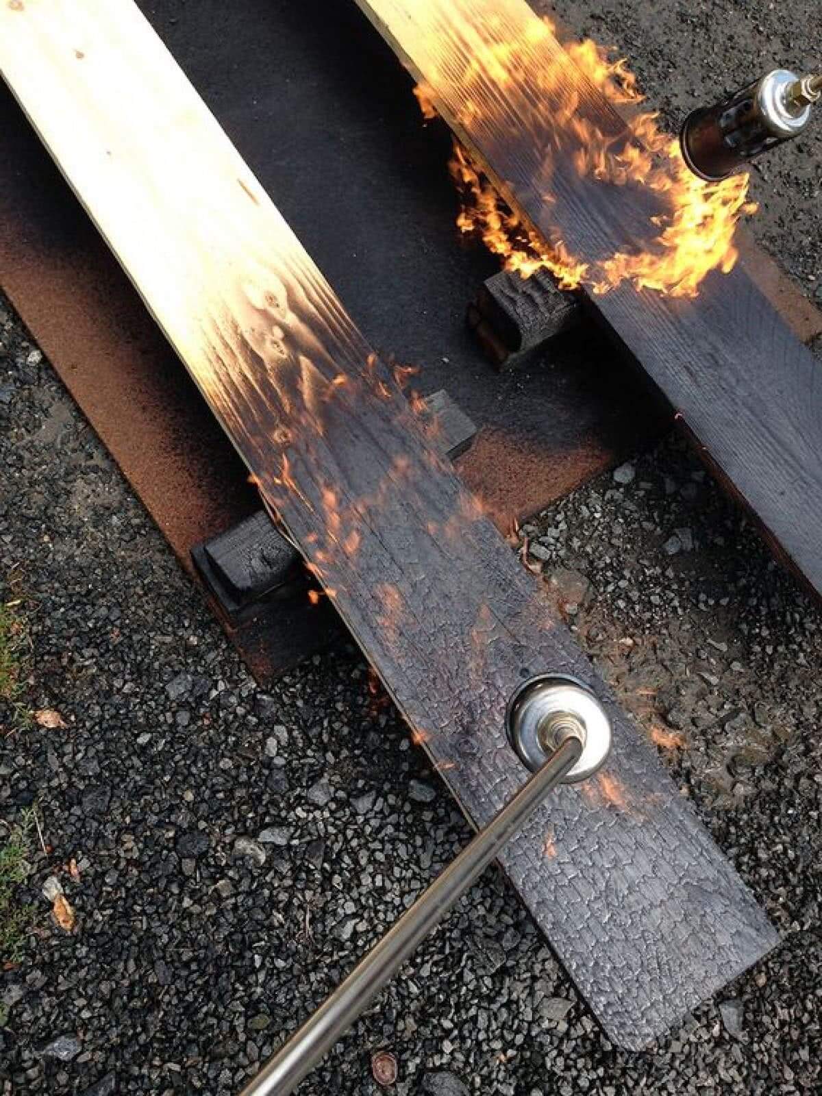 Плашки нередко обжигают при помощи горелки. Такая обработка не только служит защитой древесины от повреждения насекомыми, но и придает ограде эксклюзивный сказочный вид.