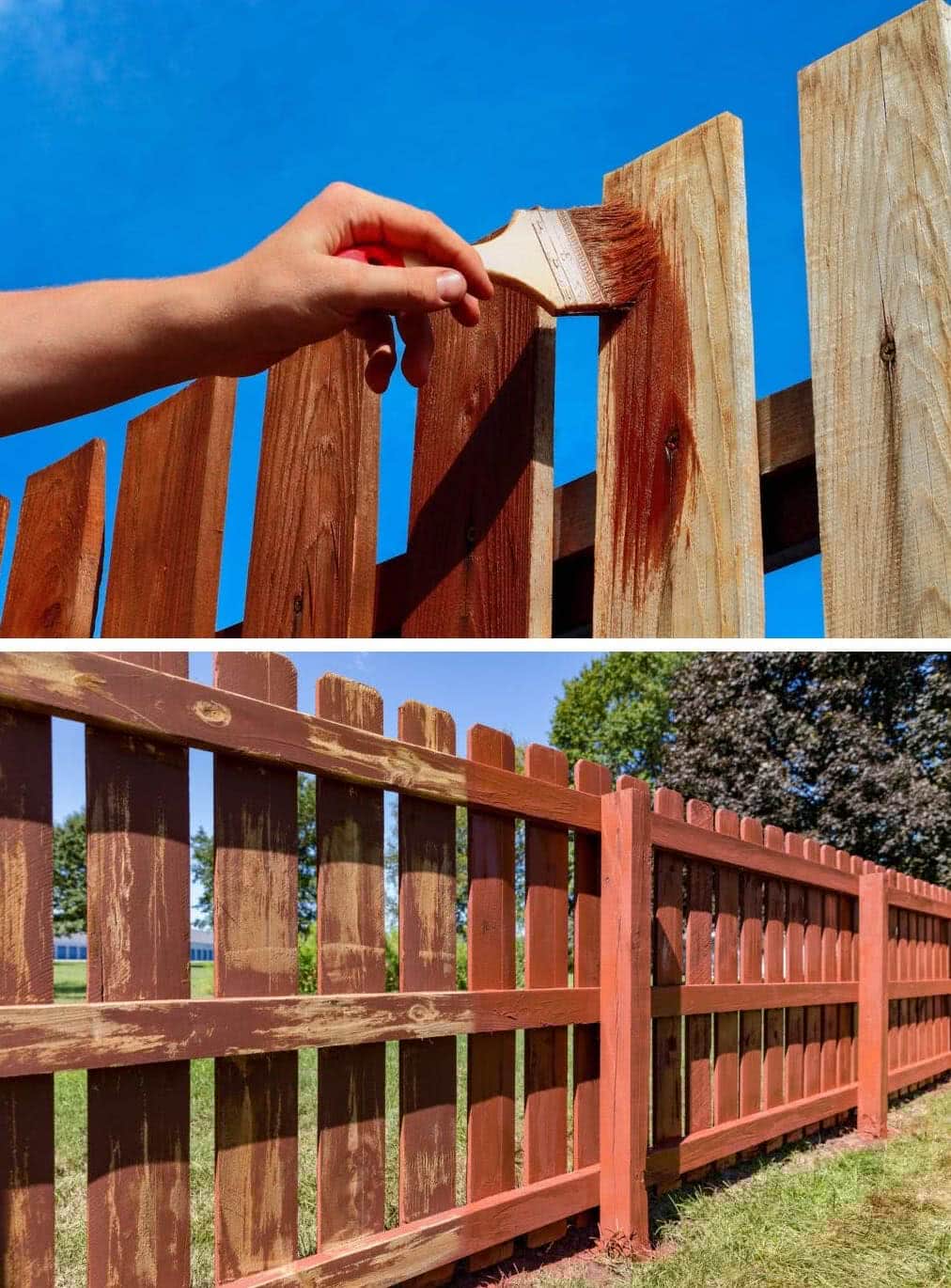 Наиболее простым и доступным приемом преображения деревянных заборов для частных домов любой конструкции служит покраска или применение лака. Оттенок выбирают, ориентируясь на общее цветовое решение всего участка.