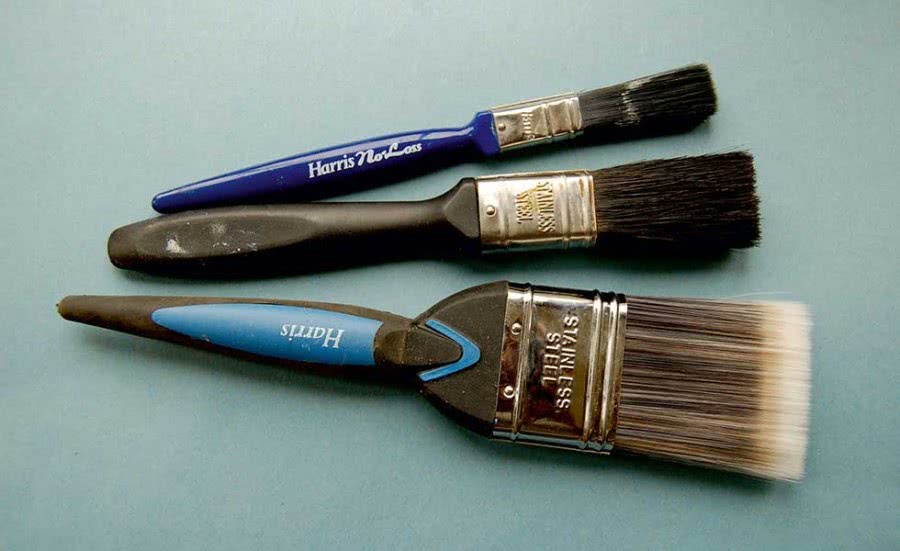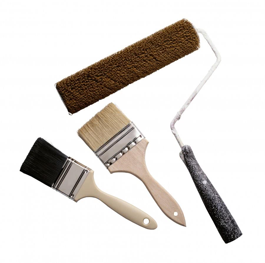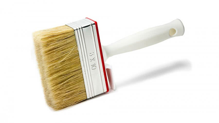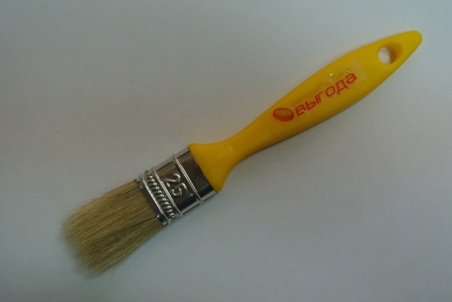 Важно выбирать кисть с упругой щетиной, которая не выпадает, если за нее потянуть. Рукоятка должна удобно лежать в руке. Кисть можно использовать многократно, если сразу после покрасочных работ отмывать ее при помощи растворителя (обычно используют уайт-спирит)