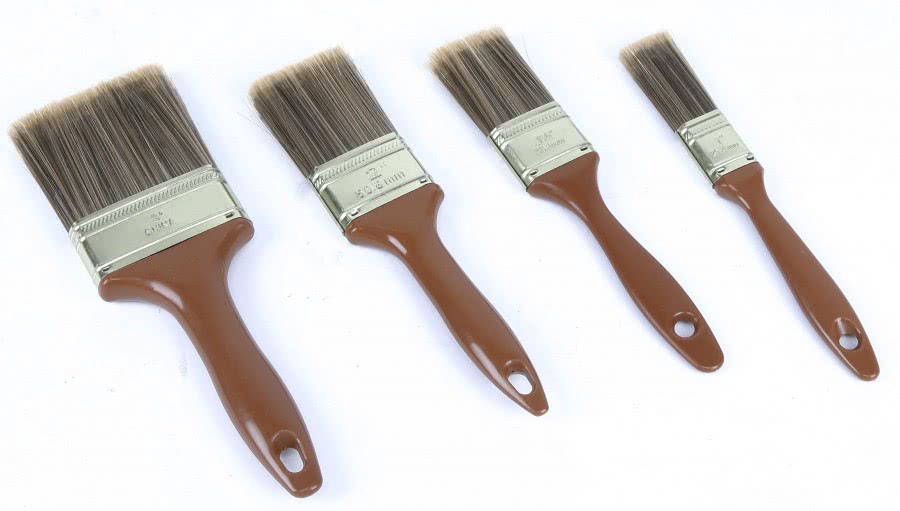 - из искусственного волокна, обычно используют нейлон и полиэфир. Щетине можно придать фактически любой уровень жесткости, а качественные кисти с искусственной щетиной стоят немалых денег и способны очень долго прослужить. Такие кисти так же, как и натуральные, подходят для масляных и алкидных красок, и будут незаменимыми при работе с латексными красками, так как сохраняют свой первоначальный вид вне зависимости от наличия воды в составе краски. Нейлоновые кисти рекомендуют использовать при окрашивании деревянного бруса;