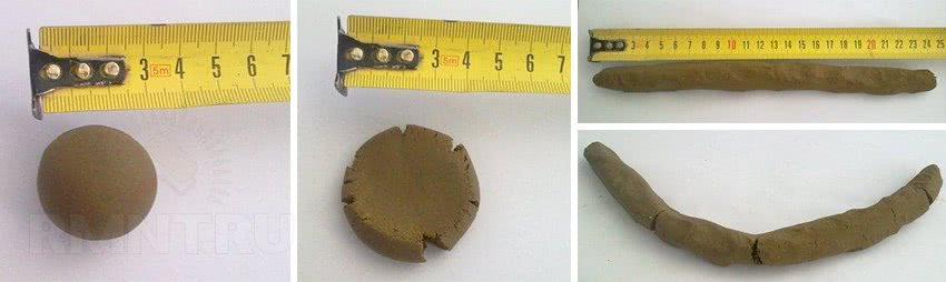 Если шарик рассыпался ещё раньше — раствор слишком «тощий». Если трещины появились при сжатии комочка глины на половину диаметра — раствор жирный. В любом случае, лучше получить более жирный раствор, чем постный.