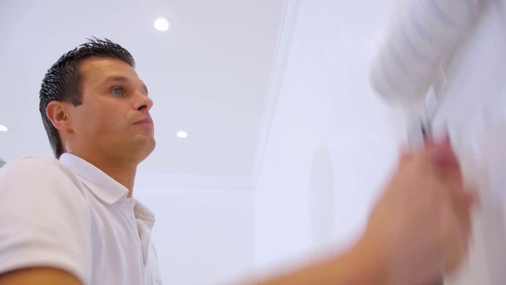 Клей необходимо наносить не на обои на флизелиновой основе, а на стены! Для этого следует воспользоваться кистью либо валиком. Рекомендуется иметь в своем арсенале оба этих приборов, и эксплуатировать их зависимо от доступности к местам.