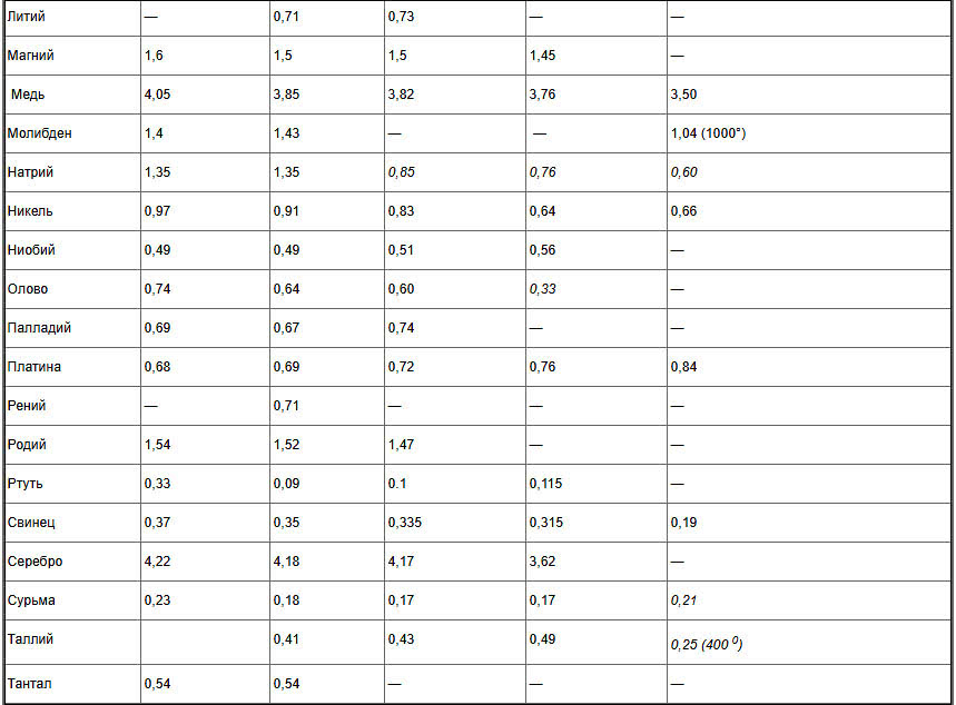 Теплопроводность металлов не менее важна в строительстве, например, при выборе радиаторов отопления. Также без подобных значений не обойтись при сварке ответственных конструкций, производстве полупроводников и различных изоляторов. Ниже приведены сравнительные таблицы проводимости тепла различных металлов.