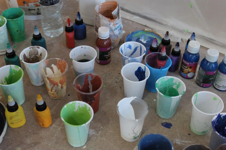 - Перед использованием, акрил нужно развести водой или специальными растворителями, но сделать это лучше в отдельной емкости, с порцией краски. Это нужно для того, чтобы не испортить сразу весь объем, а использовать лишь сколько нужно.