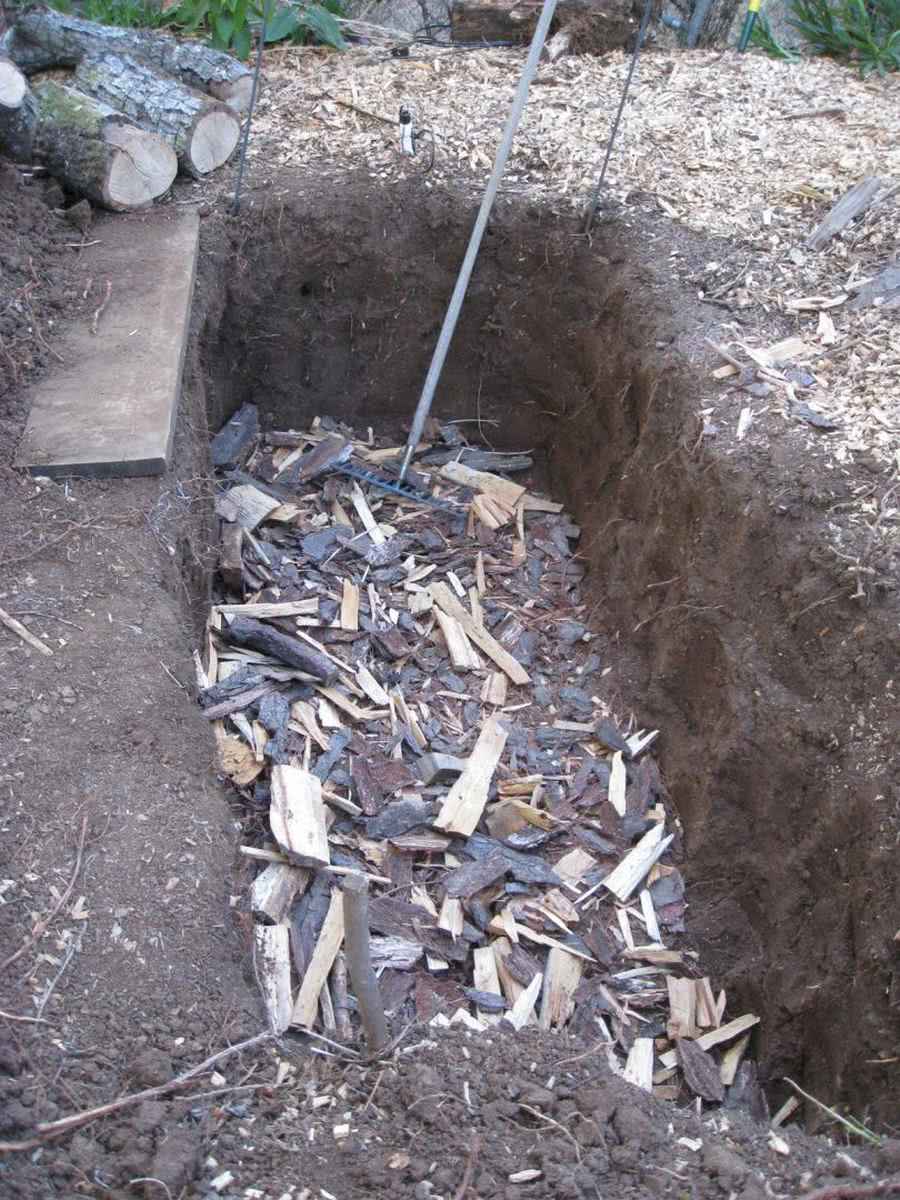 Это действительно важно, ведь в таком случае куча гораздо лучше прогревается, ее намного удобнее поливать и производить рыхление. Советуем заглубиться на 45-50 см, но оставить заграждения около метра