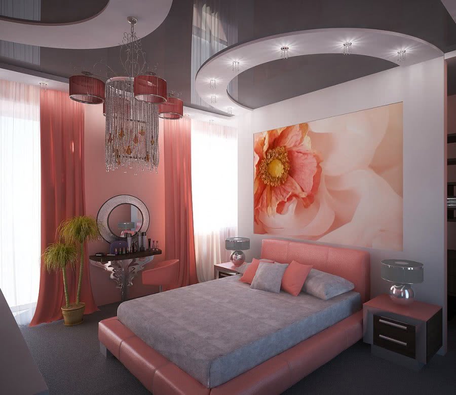 Способ подороже – натяжные потолки. Но и смотреться они будут соответствующе. Сегодня в моде не только пленка ПФХ разных расцветок, но и натяжные материалы с фотопринтами, создающие эффект 3D.