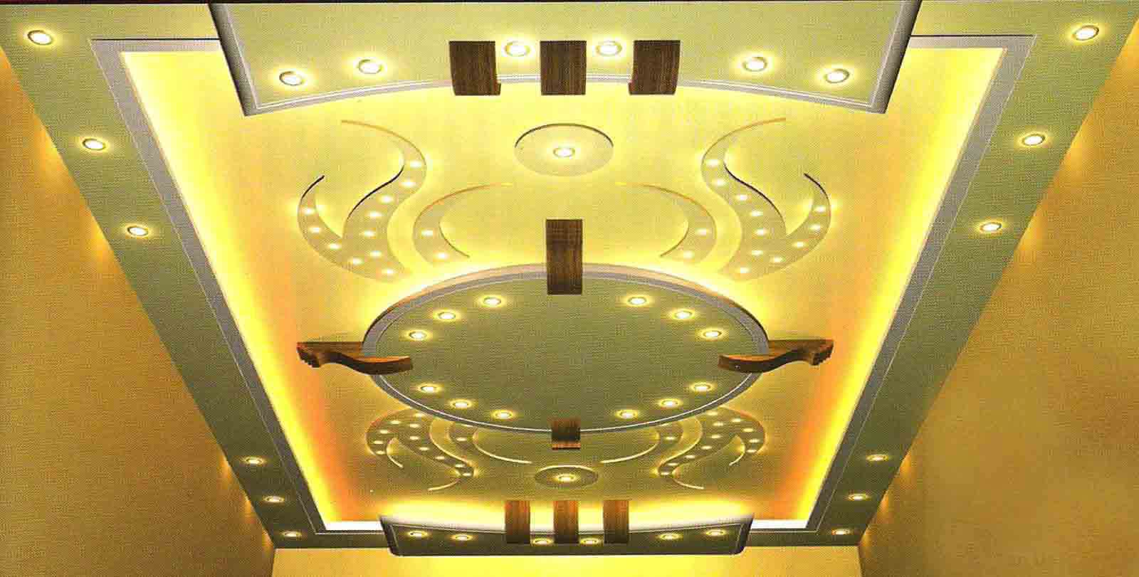 Также в трендах последних лет, которые широко используются для монтажа гипсокартонных потолков в зале в частном доме, узоры — они выгодно смотрятся и в дневном свет, но более всего раскрывают свой потенциал при привлечении подсветки и зонированного освещения.